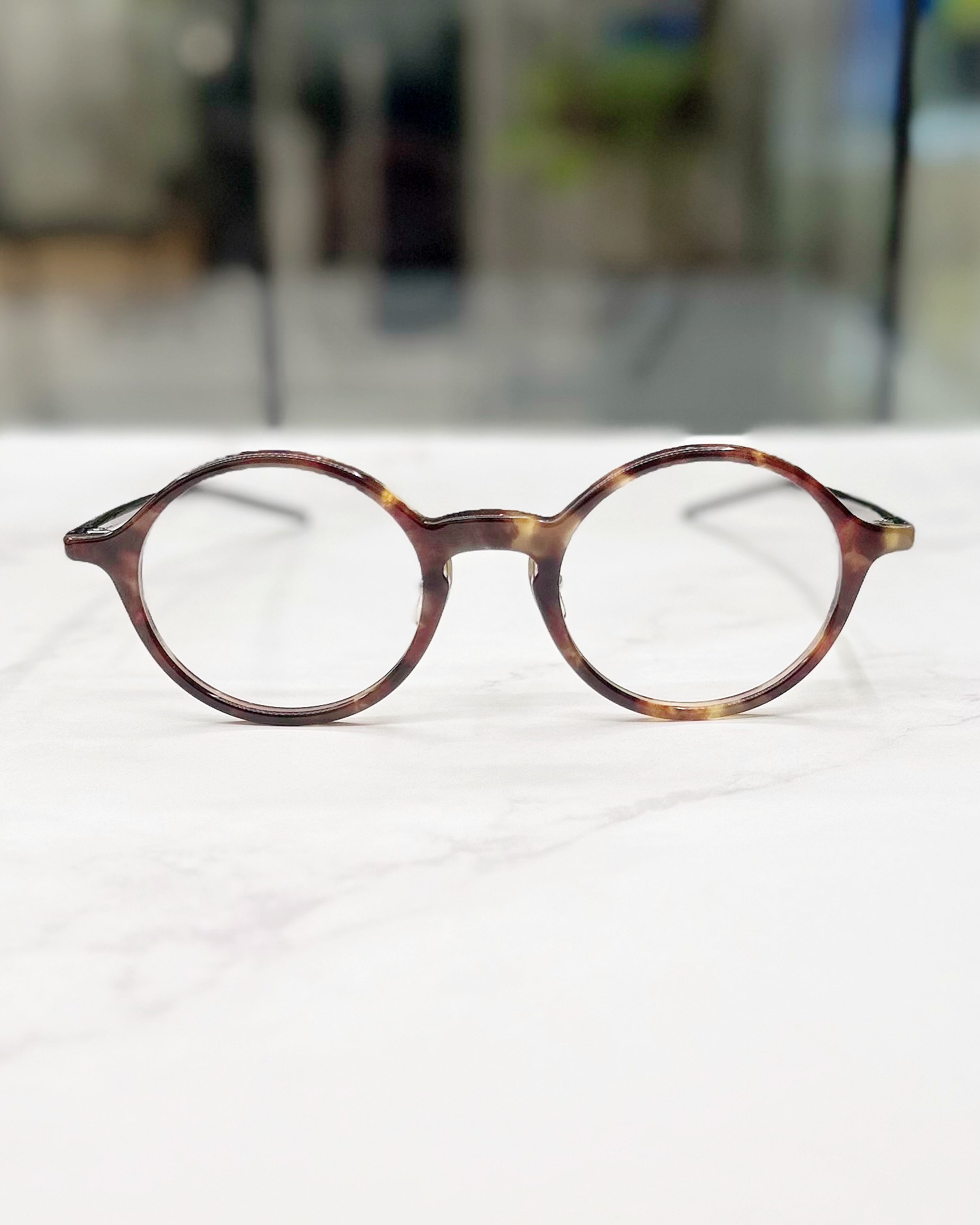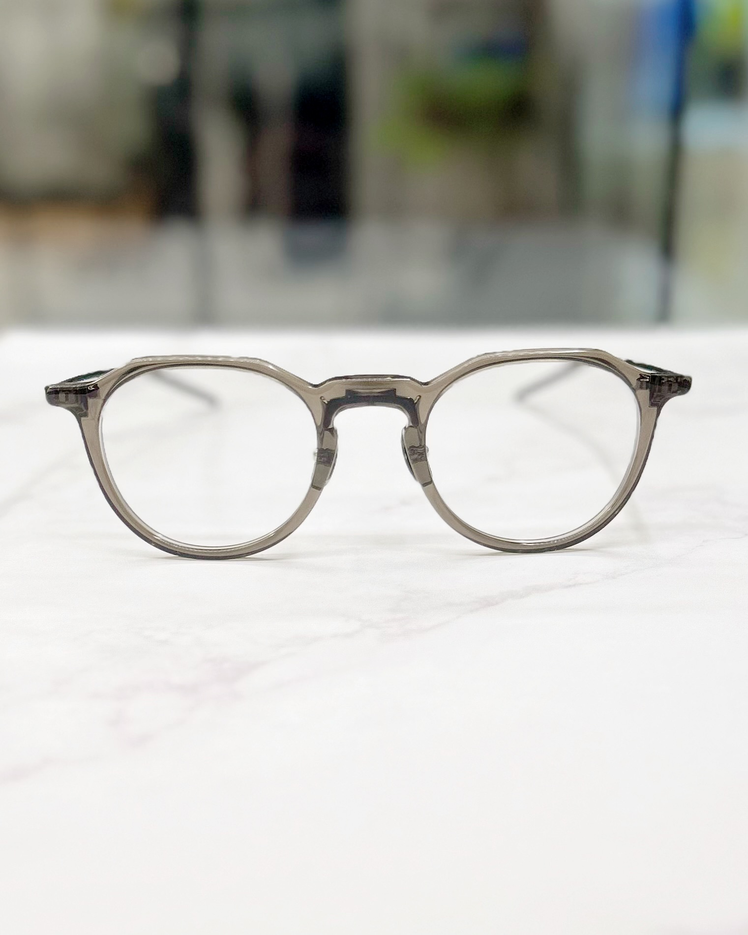 フロントの繊細なラインから流れるようにつながる細身のテンプルは、装着時に自然に顔に馴染み、