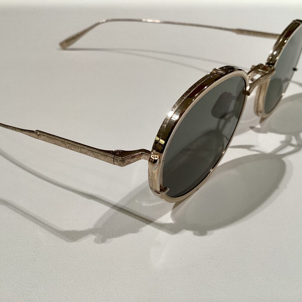 そのブリッジやスペアレンズを留めるツメ、そしてテンプルにVAN柄が美しく彫刻されています。