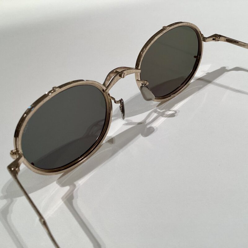 ブリッジ裏のリューズを回転させて、前ブリッジを半回転させることにより、リムやリムレスレンズを付け替えることが可能となっています。
