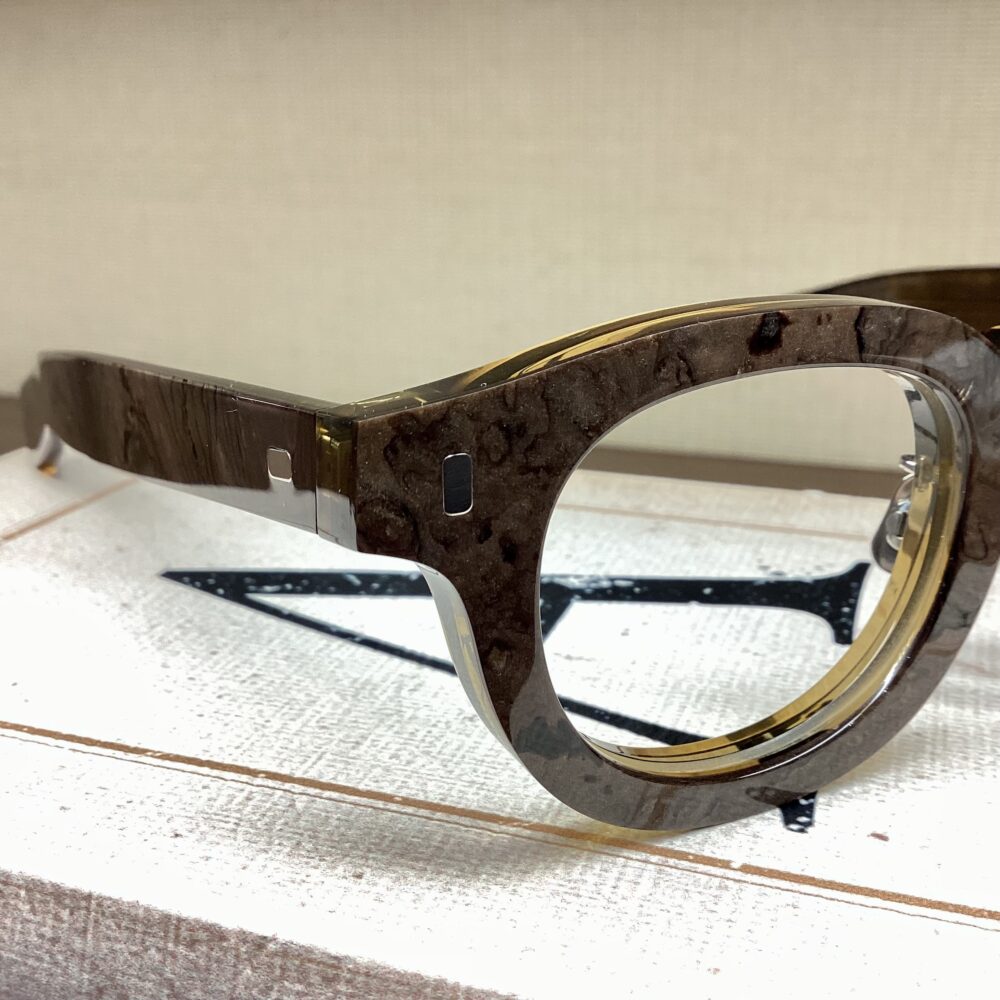 またブランドのシグネチャーパーツであるミリタリー丁番をテンプル内側に配した仕様です。