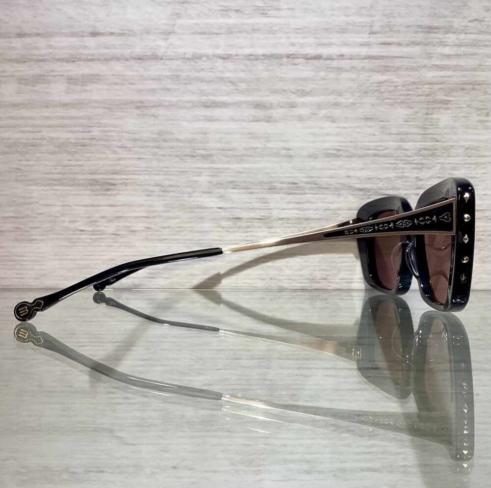 フロントのフェミニンさとサイドから見たスタッズ・テンプルの対称性がMATSUDAらしいデザインとなっています。