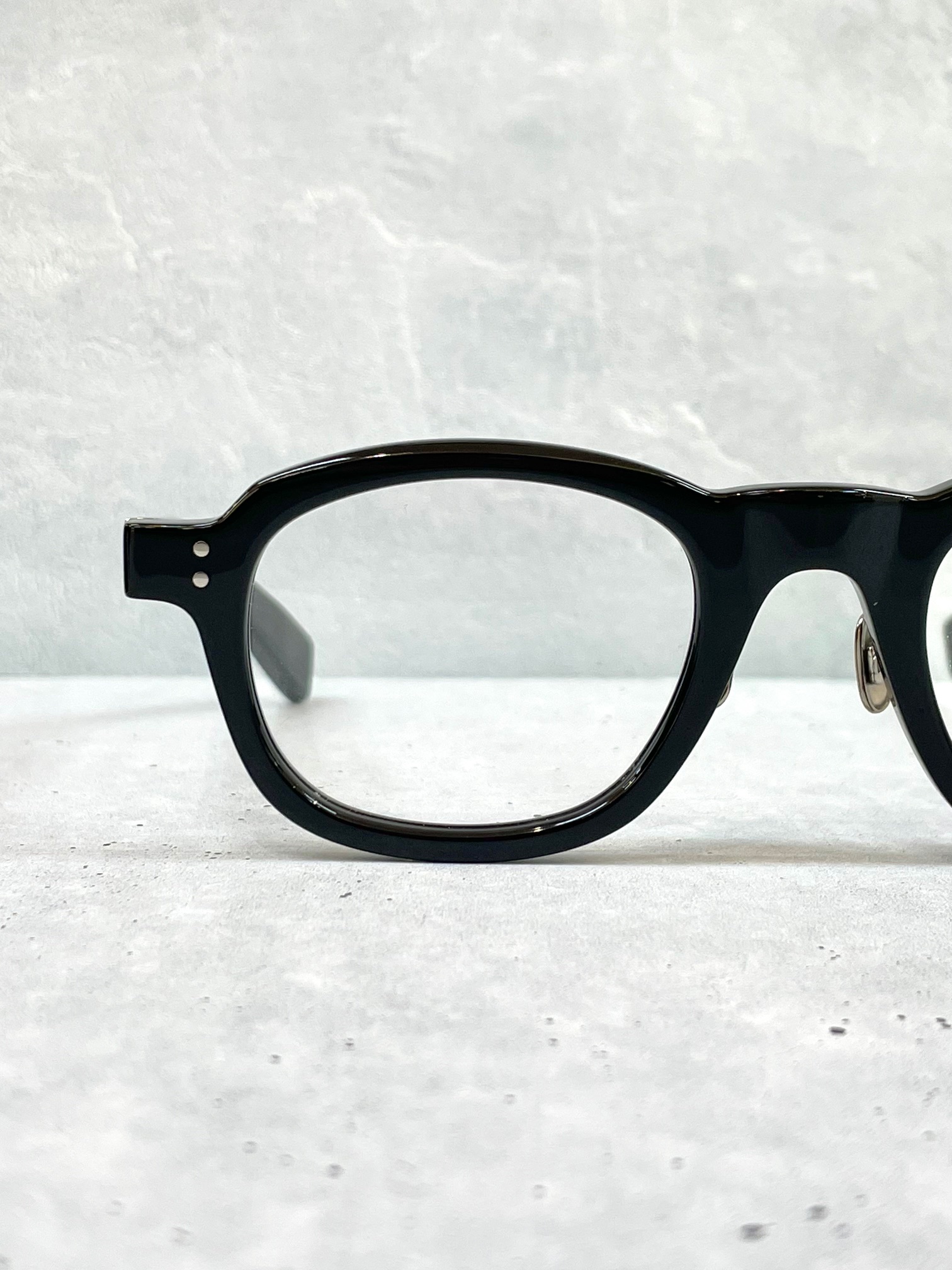 極端に段落ちした智は50年代のヒストリカルな米国メーカーのめがねをモチーフにしたもの。
